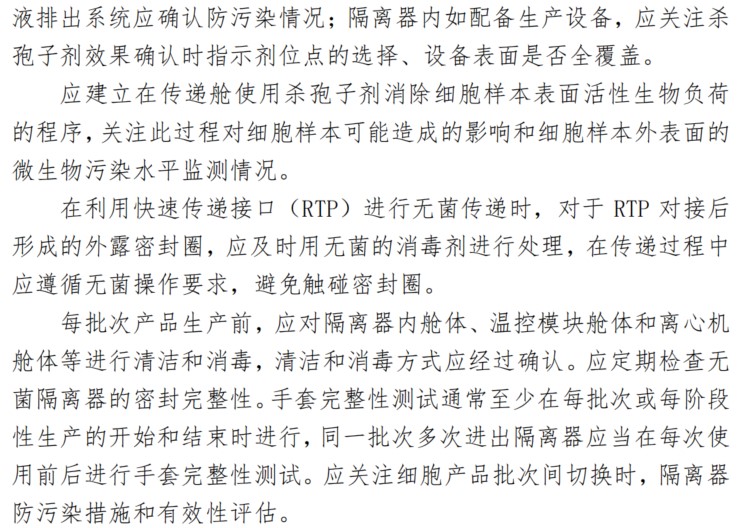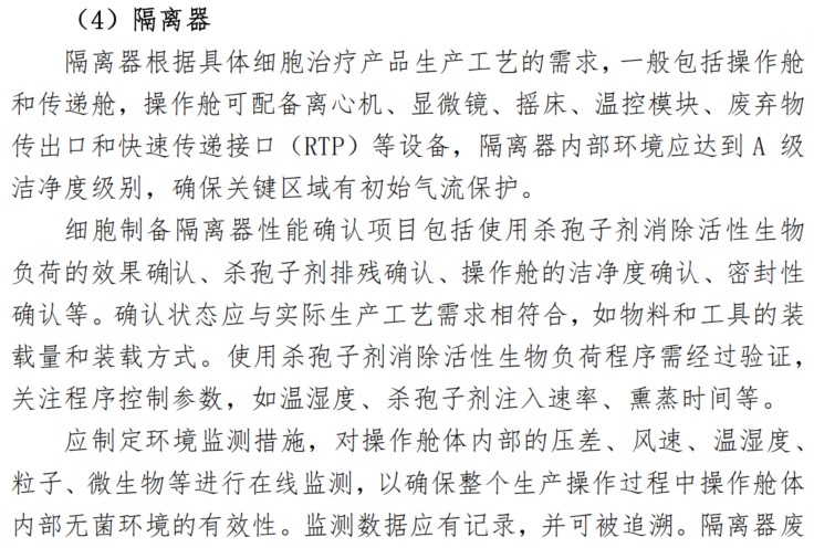 隔離器是細胞治療產(chǎn)品生產(chǎn)的常見設(shè)備,是無菌生產(chǎn)的必要條件,《指南》中對隔離器的要求主要包括以下幾個方面: