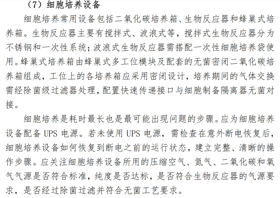 《指南》中列舉了2種細胞產(chǎn)品生產(chǎn)流程示意圖,但不同細胞治療產(chǎn)品工藝存在差異,檢查員應(yīng)按照注冊批準(zhǔn)證明文件批準(zhǔn)的工藝開展檢查。需強調(diào)的是,細胞治療產(chǎn)品為無菌生產(chǎn)工藝,生產(chǎn)的無菌保證及控制尤其重要。同時,生產(chǎn)過程用到大量一次性無菌耗材,關(guān)鍵耗材使用前應(yīng)確認其完整性,并關(guān)注對耗材可見異物的控制措施。