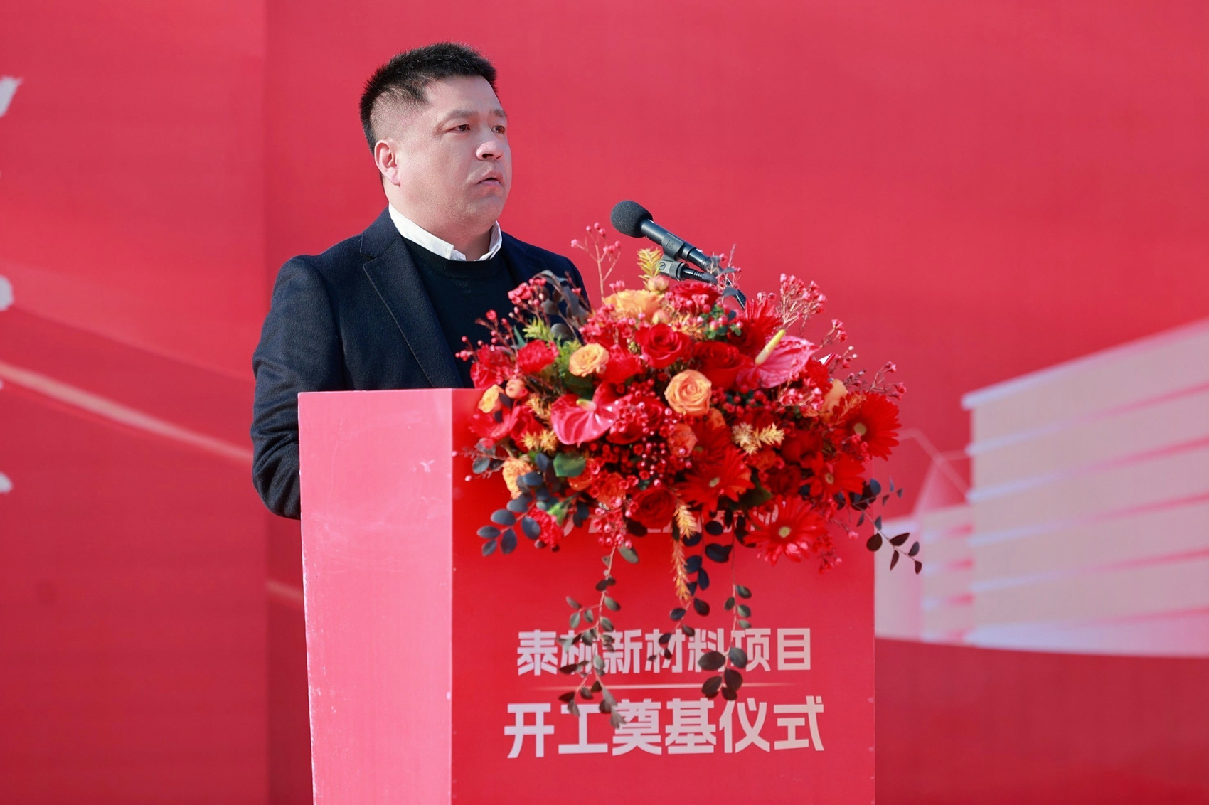 泰林生物副總裁、泰林新材料總經(jīng)理沈志林在開工奠基儀式上致辭